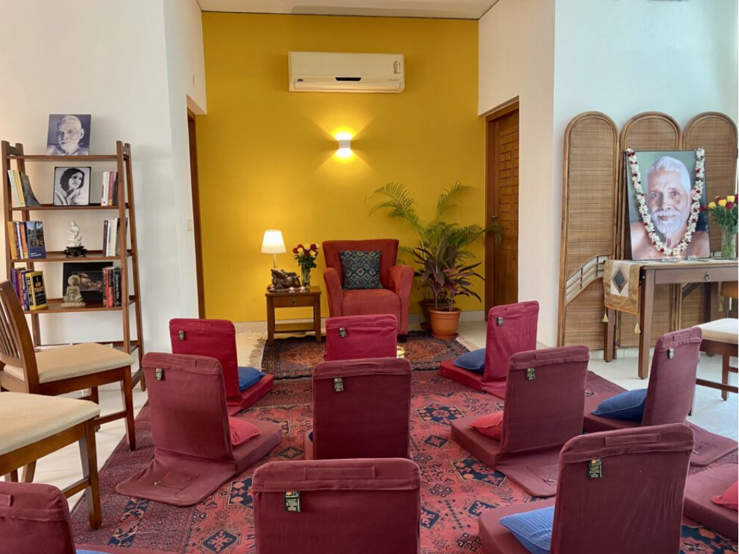 Nous serons hébergés dans un lieu de retraite privé, central mais retiré de l'agitation de la route principale, et à quelques minutes à pied de Ramanashramam, à Tiruvannamalai.